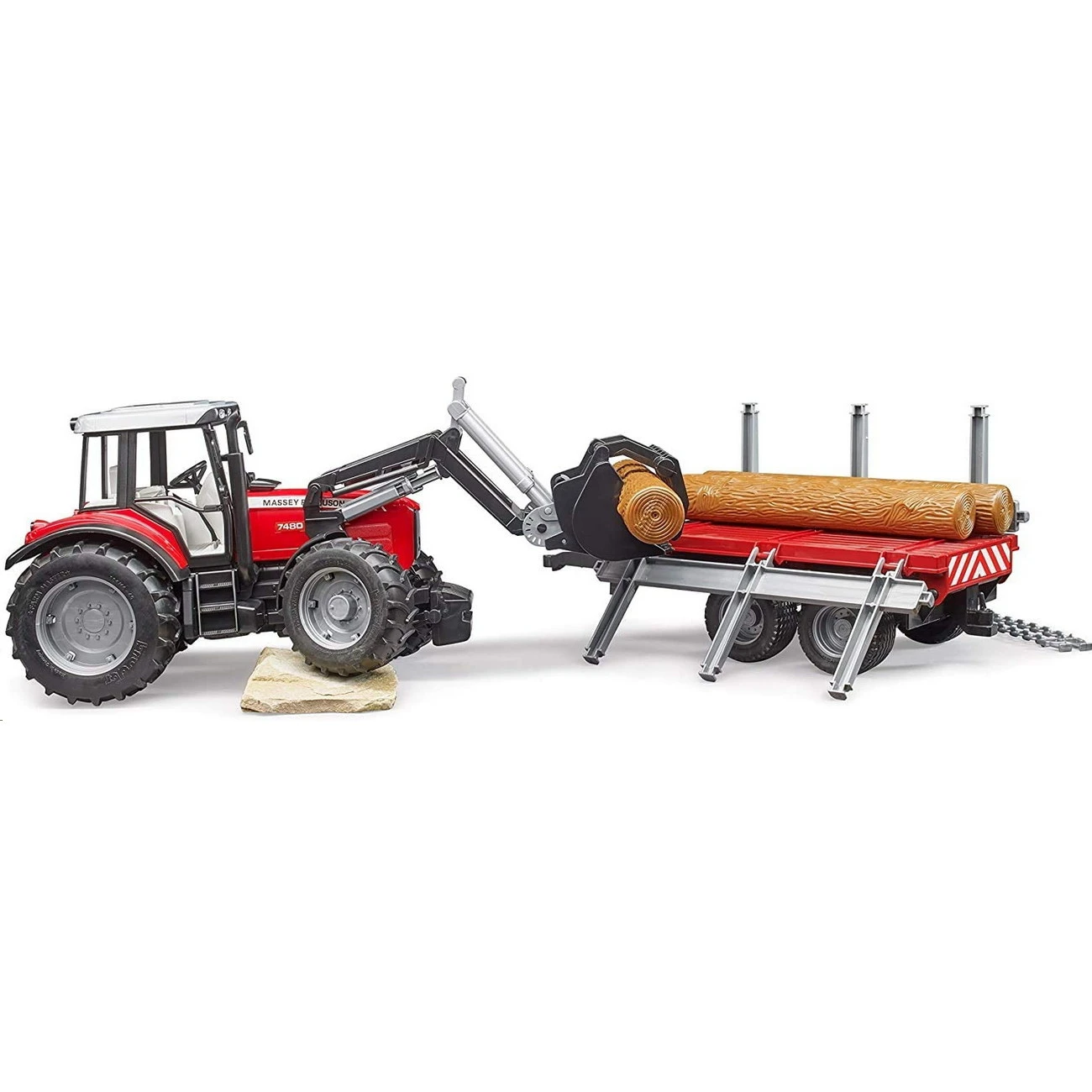 BRUDER 02046 – Massey Ferguson 7480 Mit Frontlader Holztransportanhänger