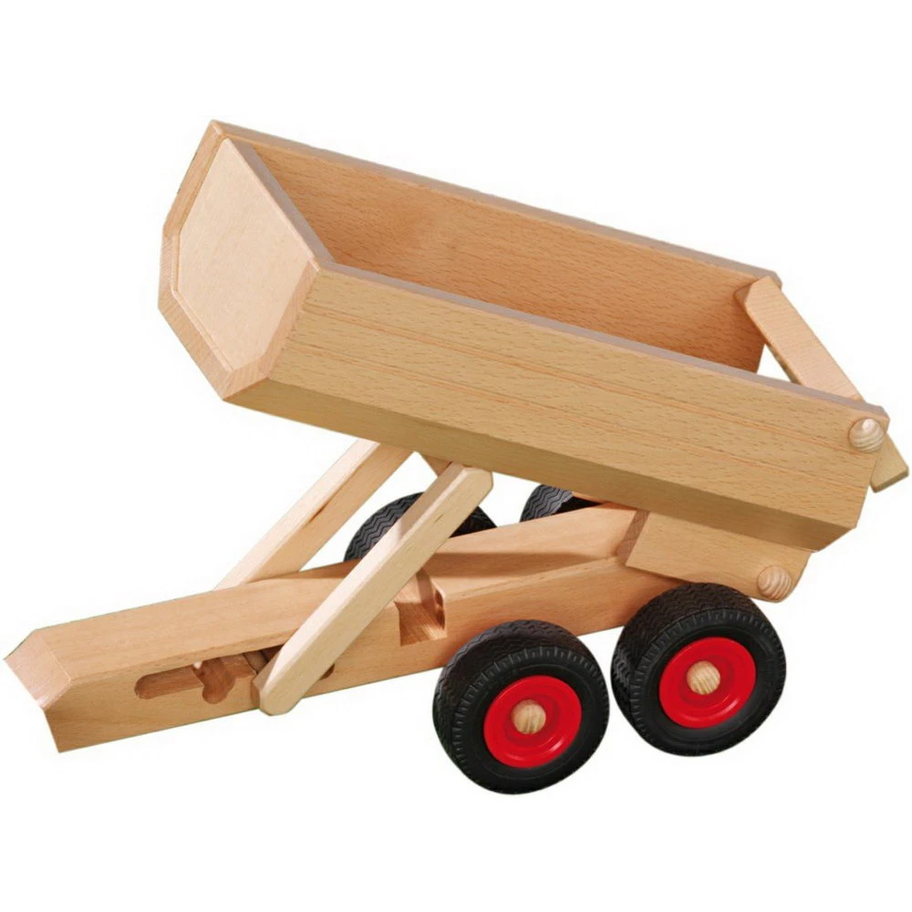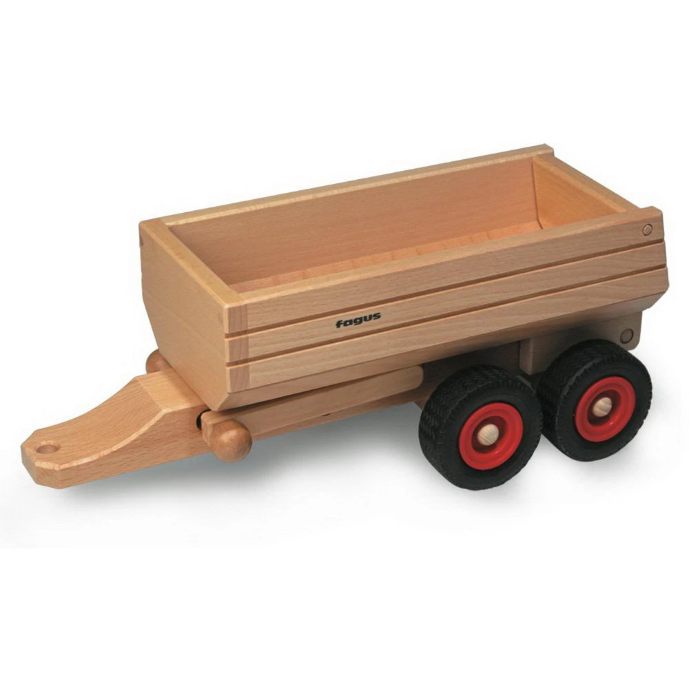 Der kippbare fagus Muldenkipper-Anhänger ist eine sehr schöne Ergänzung für die Fahrzeuge des fagus-Fuhrparks. Er ist kompatibel mit allen fagus-Holzfahrzeugen, die eine Anhängerkupplung haben – etwa dem fagus LKW-Kipplaster oder dem Traktor.
