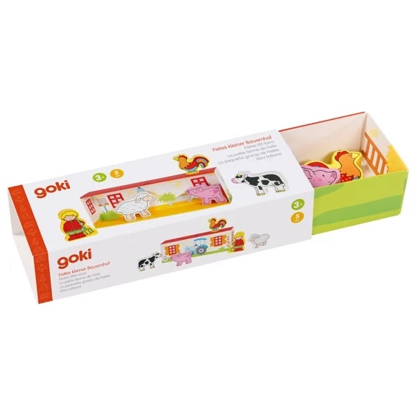 Ein kleines aber feines Spielset aus Holz, verpackt in einer Schachtel, die zum Spielhaus wird.