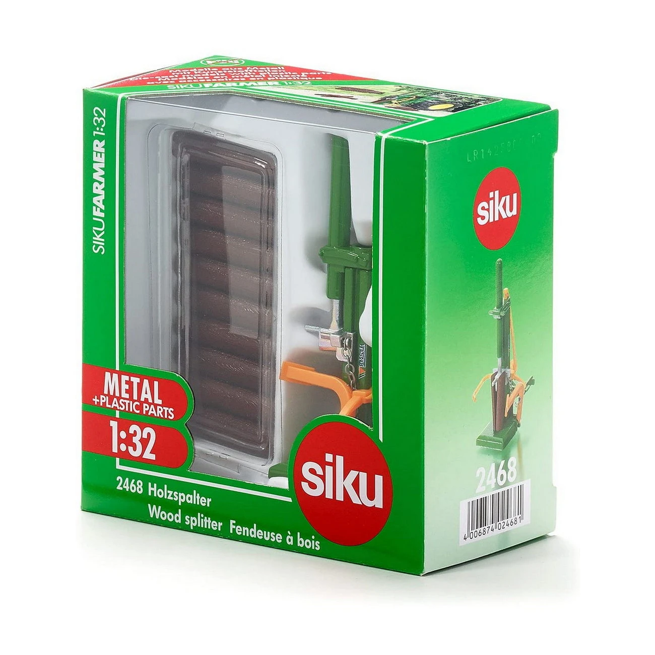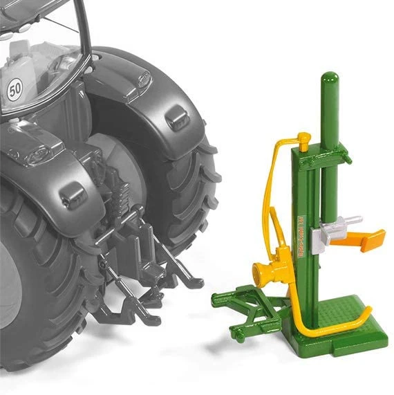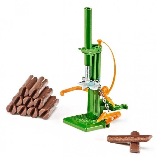 Zum fachgerechten Spalten von Brennholz ist ein Holzspalter unerlässlich. Angehängt an die Heck-Kupplung eines SIKU-Traktors spaltet das Gerät der österreichischen Firma Posch vorbildgerecht die mitgelieferten Kunststoffbaumstämme in zwei Teile. Der bewegliche Spalthammer zieht über einen mit einer Kette verbundenen Bügel den Baumstamm in die optimale Spaltposition. Der Spalthammer fährt herunter und trennt den Baumstamm in zwei Hälften. Teilbare Baumstämme als Zubehör.